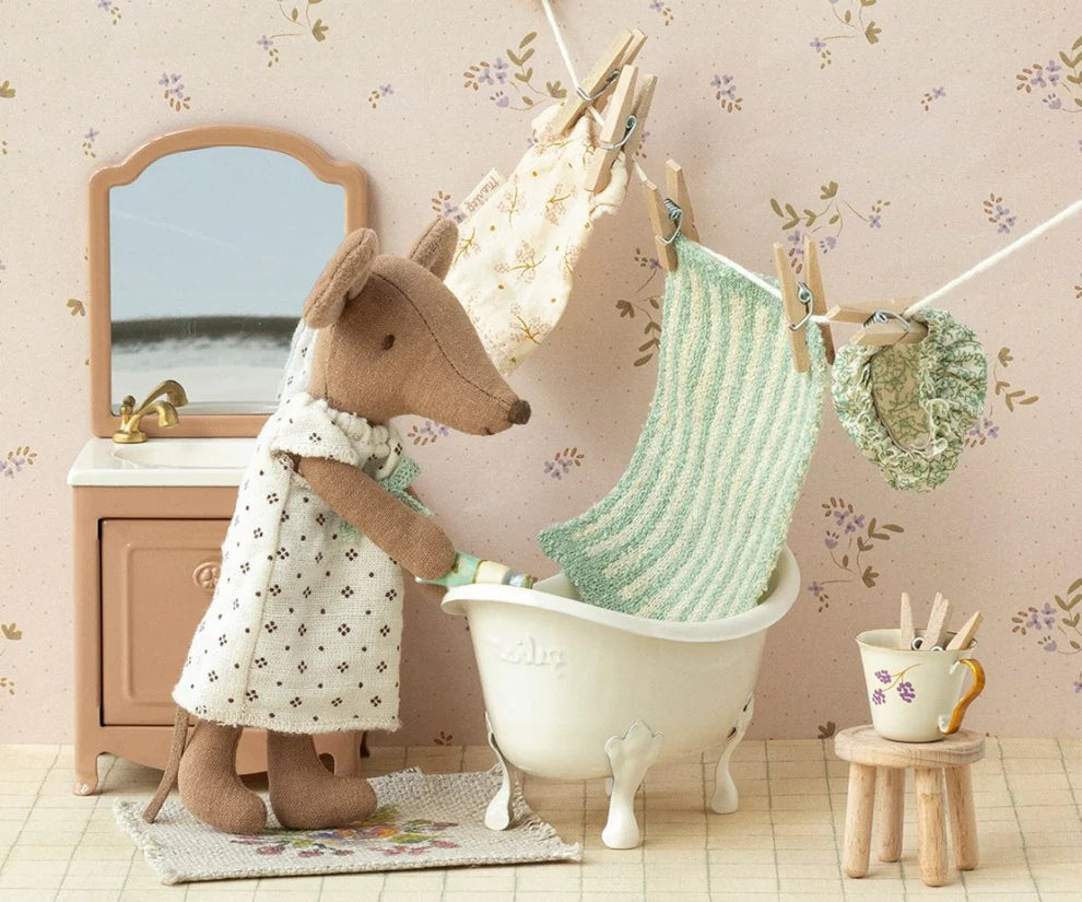 Dit mooie bad zorgt voor veel spetterplezier van alle muizen en konijnen. De muizen en konijnen van Maileg worden heerlijk schoon en kunnen heerlijk relaxen in het water. Dit badje is speciaal op maat voor de kleine muisjes en konijntjes.